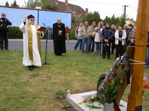 A meg-megeredő esőben Sashegyi Ildikó művelődésszervező (Alsóörs) mondott köszönetet az önkormányzat nevében az emlékkeresztet állíttató Spilt Lászlónak, majd vitéz Ajtós József esperes plébános és Rásky Miklós református lelkész áldotta meg a keresztet, s kérték Isten óvását a motorosok társadalmára.