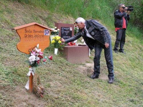 A résztvevők ezután rendőri felvezetéssel vonultak a tavalyi baleset helyszínére, ahol az alsóörsi Harley-Davidson motoros találkozó főszervezője, Dobai Attila helyezett el társai nevében virágot az útszéli mementóknál.