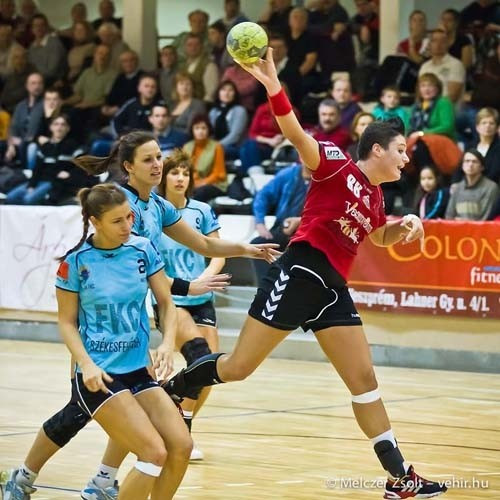 Felváltva potyogtak a gólok a kifejezetten jó iramú találkozó elején, Juhász révén öt perc elteltével volt először nálunk az előny (4:3). A mieinknél az exfehérvári Azari, a túloldalon pedig egy másik szélső, Vaszari villogott. A hazai kapuban pedig Kiss Éva remekelt, igaz, a hálóőr kiváló teljesítményéből nem tudtak előnyt kovácsolni a társak. A játékrész derekánál aztán ritkán látható momentumnak lehetett szemtanúja a mintegy hétszáz fős publikum: Kiss Éva ugyanis a saját kilenceséről vágta be a labdát a túlságosan előremerészkedő Szikora hálójába (15. perc: 8:7).