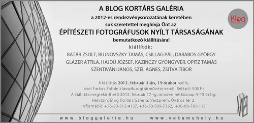 Az Építészeti Fotográfusok Nyílt Társaságának kiállításának ad helyet a Blog Kortárs Galéria Veszprémben.