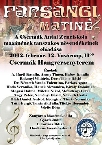 Helyszín: Csermák Antal Zeneiskola. A belépés díjtalan!