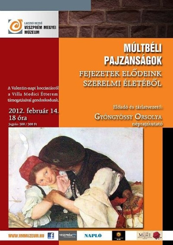 18 órakor Gyöngyössy Orsolya néprajzkutató és muzeológus a régi parasztvilág sikamlósabb témáiról fog beszélni. Az előadás a „Múltbéli pajzánságok – fejezetek elődeink szerelmi életéből” címet viseli. Valentin-nap alkalmából a belépőjegy most egy pohár ital árát is tartalmazza, mellyel a látogatók a rendezvény végén koccinthatnak.