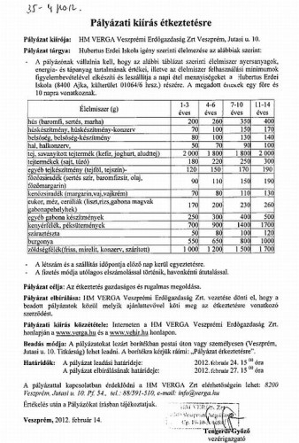 A HM Verga Veszprémi Erdőgazdaság Zrt. pályázatot hirdet a Hubertus Erdei Iskola igény szerinti élelmezésére.