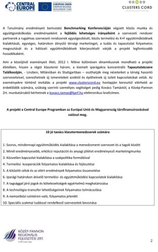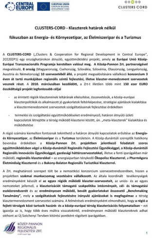 Klaszterek határok nélkül – fókuszban az energia- és környezetipar, az élelmiszeripar és a turizmus.