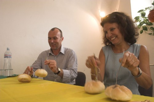 Porga Gyula is megelégedéssel köszöntötte Székely Andrea elképzeléseit, mint mondta, már az jelzésértékű, hogy egyhangúlag támogatta minden érintett, a bizottságok, illetve a közgyűlés is a kinevezését. Az alpolgármester elmondta, hogy mint a város legfiatalabb intézményével, kiemelten foglalkozik a Kabócával, de ez a családokban is így van, mindig a legkisebb gyerekre figyelnek oda leginkább. Porga ígéretet tett arra, hogy hamarosan igyekeznek a méltó környezetet is biztosítani a bábszínháznak, valamint a költségvetés kapcsán igyekeznek majd úgy dönteni, hogy a minőségi munka mellé tudják tenni a szükséges financiális hátteret. Az alpolgármester reményét fejezte ki, hogy a Kabóca a város stabil, jól működő intézménye lesz. Az évadnyitó társulati ülésen Chaplin Aranyláz filmjének egy részletét is megnézték a társulati tagok. Majd az ülés végén Székely Andrea két villára szúrt zsemlét adott Porga Gyula kezébe, akinek a híres Chaplin film zenéjére kellett azokat táncoltatnia.