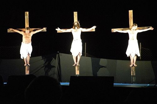 Az előadásban felhasznált nagypénteki misztériumok a maguk idejében igazi „népszínművek” voltak. Professzorok írták, és a csíksomlyói ferences barátok lejegyzésében maradtak ránk. Az 1751., az 1752., az 1759. és az 1766. évi csíksomlyói misztériumok, valamint egy ismeretlen helyről származó passiójáték felhasználásával mindezeket színpadra írta Katona Imre.