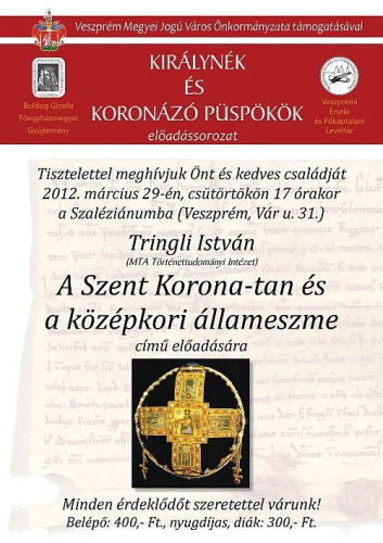 A sorozatban Tringli István tart előadást „A Szent Korona-tan és a középkori állameszme” címmel, 2012. március 29-én, csütörtökön 17 órakor Veszprémben, a Szaléziánum épületében.