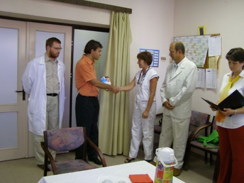 Dr. Rácz Jenő főigazgató örömmel fogadta az újabb adományt, mint mondta ez a harmadik alkalom nagyon rövid időn belül, hogy kézpénzzel is hozzájárulnak az intézmény fejlesztéséhez. Ez a kitüntetett figyelem az itt dolgozók áldozatos munkájának köszönhető – mondta Rácz Jenő. Majd arról is beszámolt, hogy augusztus 20-án összesen 40 állami kitüntetést adtak át egészségügyi dolgozóknak, a kitüntetettek közül ketten is a Veszprém megyei kórházban dolgoznak. Sok a probléma még mindig az egészségügyben, de ha jól dolgozunk, van visszajelzés. Az az út, amin elindultunk úgy látszik mások figyelmét is felkeltette – mondta a főigazgató.