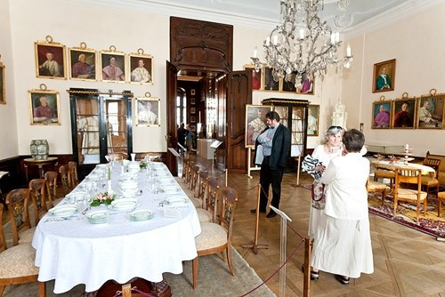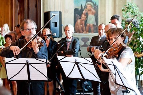 A gyönyörű környezetben, az érseki palotában látható kiállítás megnyitóján fellépett a Mendelssohn Kamarazenekar.
