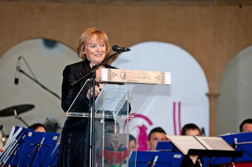 Kubik Anna színművésznő Gizella alakját festette fel a szépszámú közönség előtt. Múltidézés és a személyes benyomások kavalkádjából kiviláglott az ünnepi beszéd lényege, ami egyben Gizella királyné üzenete: ha másokért élsz, az a legnagyobb ajándék.