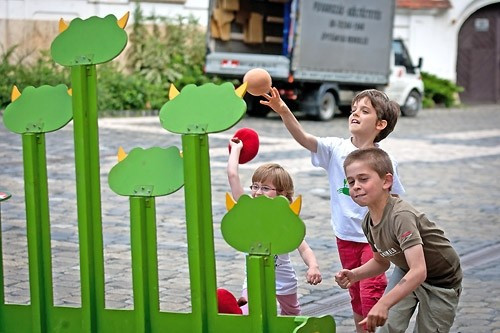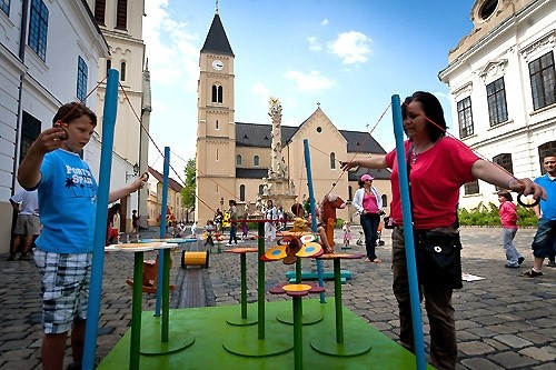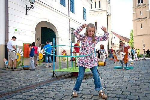Nem csak a Petőfi Színház, de a Szaléziánum is ötletes játékokkal invitálta kalandra a gyermekeket a Szentháromság téren.