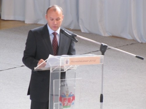 – Veszprém diákváros, ahol a kiváló iskolák kiváló tanárokat adtak a hazának. Olyan művészekről van szó, akik legnagyobb kincsünkkel, egyben a legnemesebb anyaggal: a gyermekkel dolgoznak – tette hozzá Porga Gyula. A polgármester aláhúzta: a hivatás gyakorlása nem könnyű, ugyanakkor arról biztosította a jelenlévőket, hogy Veszprém városa mindent megtesz az iskolák megtartása és színvonalas működtetése érdekében.