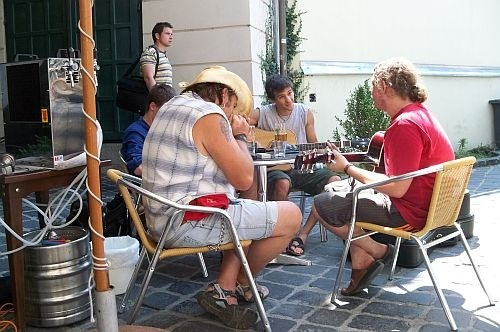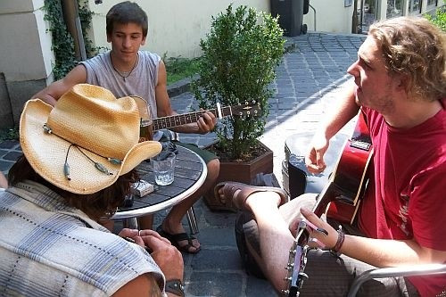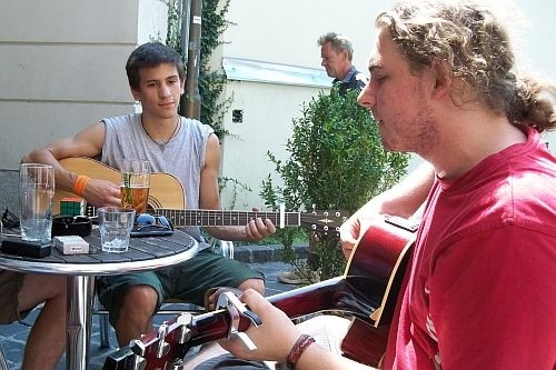 Szegedről érkezett hozzánk a Poczik László és Tóth Gergely. Habár idén nem sikerült nevezniük, mégis hozták a hangszereiket. Járják a várost és zenélgetnek – ahol és amikor kedvük tartja. Végül is erről szó az Utcazene. Annak ellenére, hogy már 4–5 éve próbálnak erre a fesztiválra eljutni, ez az első látogatásuk Veszprémben.