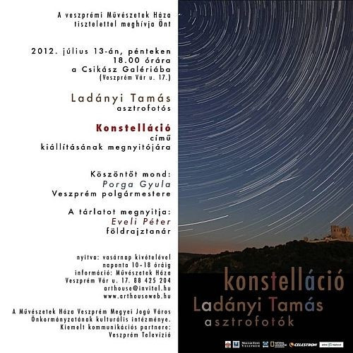 Konstelláció címmel nyílik július 13-án, pénteken 18 órakor Ladányi Tamás asztrofotós kiállítása a Csikász Galériában.