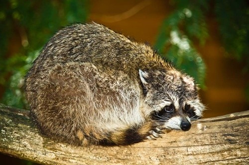 Állatkertünk legnyugodtabb lakója, Kukkancs, a mosómedve napközben szinte meg sem moccant, csak lógatta tappancsait, de neki is jól esett a bundáját felfrissítő zuhany.