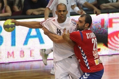 Óriási hőségben, kimaradt ziccerekkel indult a meccs, az 5. percben még csak 1-1 gól esett mindkét oldalon. A folytatásban is felváltva estek a találatok, Iváncsik Tamás – aki, ha így folytatja, még bekerülhet az utazók közé - gyorsan háromszor is eredményes volt, míg a Veszprémtől nyáron eljött Vujin, valamint a szegedi Prodanovic is beköszönt Miklernek. Egyik gárda sem tudott elhúzni, kétgólos különbség először csak a 22. percben alakult ki (8-10), majd egy újabb vendégtalálatot követően időt kértek az Eb-második szerbek. A hazaiak hétperces szünet után, emberelőnyben voltak ismét eredményesek (9-12), és a szünet előtt tovább faragtak hátrányukból, részben Harsányi kimaradt büntetőjének köszönhetően.