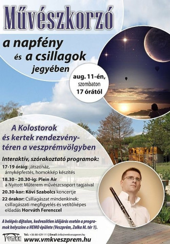 Koncerttel, árnyképfestéssel, csillagászati előadással várja az augusztus 11-én, szombaton az érdeklődőket a Művészkorzó a Kolostorok és kertek területén.