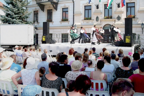 A portékák mellett helyet kapott a zene is. A városháza előtti színpadon modern- és néptáncosok szórakoztatták a közönséget. A fellépők a tűző napon, némelyek talpig beöltözve adták elő a produkciókat, ez pedig mindenképp elismerést érdemel. Főleg az olyan rekkenő hőségben, amikor az embert már a kiterített báránybőr látványától is a rosszullét kerülgeti.