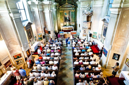 Hogy nem vagyunk piaristák? Nem gond! A templom nem csupán miséknek, hanem kiállításoknak is helyet ad. Ha mégis piaristák lennénk, az már csak hab a tortán.