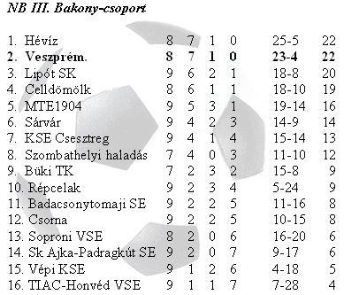 Veszprém: Varga T. – Grósz, Foki, Pálfi, Bognár, Garai (Czvetko), Boromisza D. (Weiber), Boromisza G., Vető (Fejes), Tatai, Marosvölgyi.