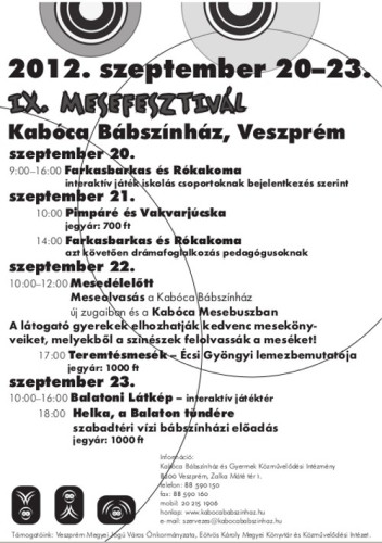 A négynapos rendezvénysorozaton újra láthatja a közönség a Kabóca Bábszínház népszerű előadásait. A Farkasbarkas és Rókakoma, a Pimpáré és Vakvarjúcska, illetve a nyáron nagy sikerrel bemutatott Helka, a Balaton tündére is szerepel a fesztivál programjában. Szombaton délelőtt közös meseolvasásra invitálják a gyerekeket, délután pedig Écsi Gyöngyi mutatja be Teremtésmesék című lemezét.