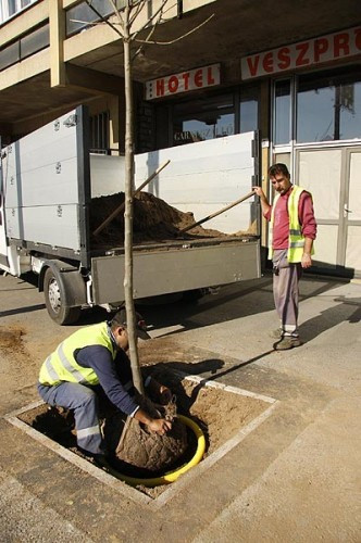 Fákat ültetnek a Hotel előtti járdán a közüzemi vállalat munkatársai. A két éves fák tavasszal már kilombosodnak, javítva ezzel a városképet és árnyékot adva a buszra várakozóknak. Az Óvári Ferenc utca felújítása is folyamatban van, az arra közlekedők figyeljenek a megváltozott forgalmi rendre!