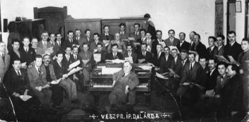 A dalárda próbája, a zongora előtt Gaál Sándor karnagy ül.