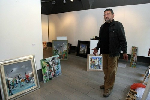 – Úgy fogalmaztuk meg a meghívót, hogy akinek ideje van, az jöjjön, nézzen be, én közben festegetek és beszélgetek, s meg lehet nézni körülbelül húsz képemet. Például azt a festményt választottam a plakátra, ami az édesanyámnak a kedvenc képe volt; hoztam a korai képek közül egyet, hogy lássuk, miből mi lett. Hoztam olyant, ami Veszprémről szól, mert a lokálpatrióta lelkem ezt igényli.