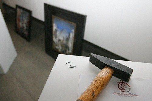 Van egy kép, aminek az a címe, hogy Láblógatók. Mintha itt az Óváros téren ülne néhány figura, és lógatná a lábát. Azt is tapasztaltam, hogy fórumokon meg kommentekben sokan panaszkodnak, hogy itt nincs semmi. Én meg azt mondom, hogy nem dumálni, hanem csinálni kell! Erről szól a Nyitott Műterem formáció. Két éve néhány művész, fotós barátommal összenéztünk, hogy csináljunk valamit, aminek nincsenek néhány ízlésbéli kérdéstől eltekintve korlátai. Ezzel a társasággal megfordultunk itt az Óváros Galériában is, az Ökovásáron, Tihanyban, Budapesten.