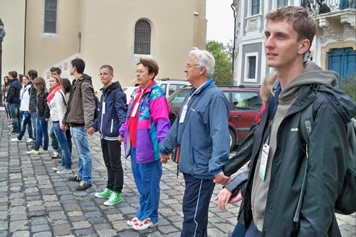 Kicsik és nagyok álltak végig körbe a Szentháromság téren egymás kezét fogva pénteken. Az egészen fiatal általános iskolásoktól kezdve a középiskolásokig szinte minden korosztály képviseltette magát.