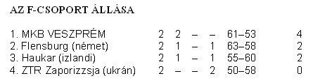 Veszprém: Peric – Markovic 2, Gál 7, Lapcevic 1, Lushnikov,