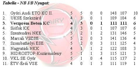 A Győr vendégeként vesztette el idei veretlenségét a Veszprém Beton KC az női kézilabda NB I/B. Nyugati csoportjában. A félidei 14:14-es döntetlent követően, 29:22 arányú vereségbe szaladt bele Gyurka János csapata.