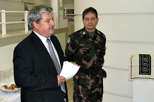 Sipos Gábor nyugállományú ezredes, az egyesület elnöke köszöntötte a megnyitó résztvevőit. Örömét fejezte ki, hogy ezúttal ilyen szép, reprezentatív környezetben rendezhetnek kiállítást. Elmondta, az egyesület a helyőrségi klubok értékeinek megmentésére jött létre 1992-ben, és azóta is ezért a célért dolgoznak. Ebben a munkában kiemelt fontosságú a képzőművészek, iparművészek támogatása, összefogása.