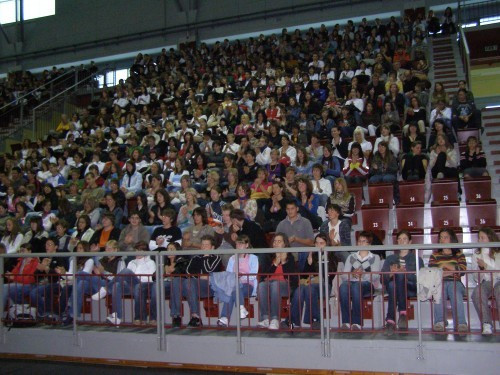 A bevezetőket követően a több száz veszprémi diák fegyelmezett érdeklődéssel tekintette meg a filmet.