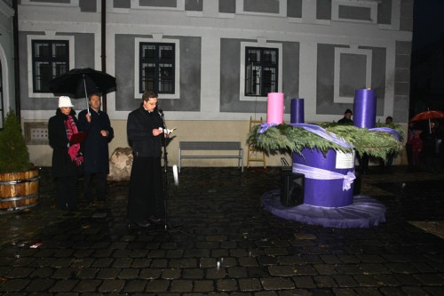 László Dezső atya rövid beszédet tartott és megáldotta az adventi koszorút. Némedi Lajos alpolgármester a gyertya meggyújtása után megosztotta gondolatait a karácsonyról. Elmondta, nem véletlen, hogy a karácsony a legnagyobb ünnep az emberiség és főleg a kereszténység történetében, hiszen a legalapvetőbb emberi érzésről, a szeretetről szól.