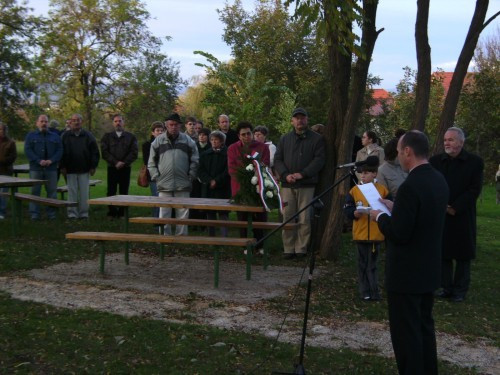 Idén első alkalommal ugyanis, megemlékezést tartottak a forradalom emléknapján. A helyszín az idén augusztusban avatott Emlékfánál kialakított park, ahol szép számmal gyűltek össze idősek és fiatalok. A műsort a Himnusz és a Szózat foglalta keretbe, a magyar ünnepi hagyományoknak megfelelően. A beszédet Porga Gyula, veszprémi alpolgármester tartotta. Felhívta a figyelmet az ’56-os forradalom máig tartó hatására, a magyar szabadság vágy erejére, amely képes volt történelmet írni valamint a nyugati népek megkérdőjelezhető hozzáállására a forradalomhoz. Emellett elmondta, hogy mekkora megtiszteltetésként élte meg, hogy ő lehetett Kádárta történelmében az első, aki beszédet tartott ’56 alkalmából.
