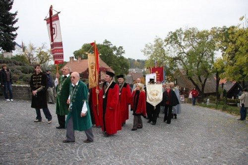 A kikötőből a menet az apátsághoz vonult, ahol csatlakoztak az ország különböző részeiből érkezett borrendek