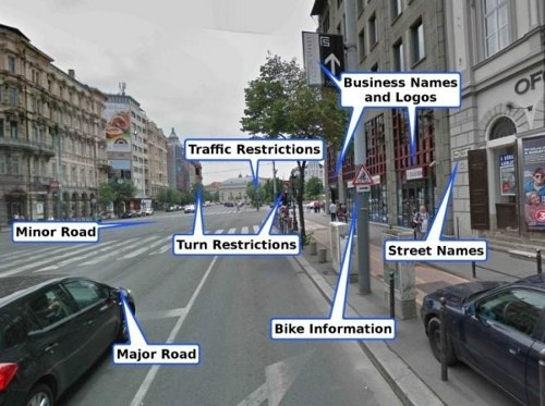 – A légi- és műholdképek, a vásárolt térképek és az autóink által gyűjtött információkból a mérnökök tették össze a térképet. A korábbi térképeket rávetítték például a műholdképekre, hogy meggyőződjenek arról, hogy minden valóban ott van-e, ahol a térkép jelöli. A kiemelten fontos helyekről akár külön térképeket is beszereztek. Mindeközben a Google autói hónapokon át járták az országot. Néhány méterenként készítettek fotókat. Ezeken a fotókon sok olyan információ van, amivel gazdagabb lett a térkép: utcanevek, házszámok, boltok nevei, táblák, bicikli- vagy buszsávok. Ezeket mind belegyúrták az új térképbe.