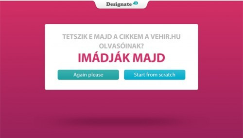 godesignate.com is hirdeti: "The easy way to make decisions." Itt minden stratégiai döntésünkhöz pillanatok alatt segítséghez juthatunk. Csak a kérdést és a lehetséges válaszokat kell megadni, utána kényelmesen hátradőlve bízhatjuk rá magunkkat a rendkívül fejlett technológiára... "Vajon ma is a főnököm helyett kell dolgoznom?"