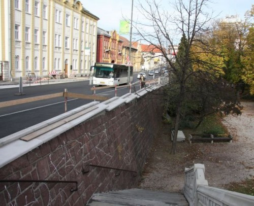 A korlát átmeneti része vörös kőből készült, akár az eredeti, ez szerencsére megfelelő. A bontás tehát az efölötti részre vonatkozik.