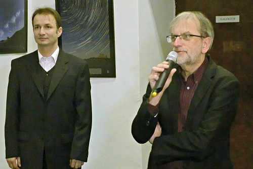 A tárlat csütörtöki megnyitóján Kováts Péter, a Veszprémi Zeneiskola igazgatója a rendezvény házigazdájaként köszöntötte a megjelenteket. Az igazgató felelevenítette, hogy egyszer ő maga is megpróbálkozott a csillagok megörökítésével. Bakonybélben fordította az ég felé a fényképezőgépét – próbálkozásait egy közel merészkedő róka is kíváncsian figyelte, ám végül sem a csillagokat, sem az állatot nem sikerült lencsevégre kapni.