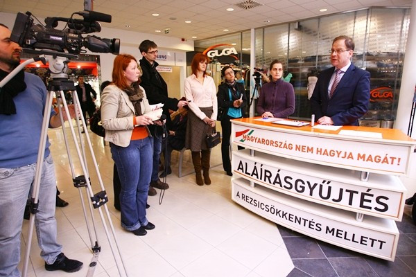 Navracsics Tibor elmondta: az egyébként is nehéz anyagi helyzetben élő magyar emberekre óriási terhet raknak a külföldi tulajdonban lévő szolgáltatók. A hivatalos statisztikák szerint egy átlagos keresetű család jövedelmének egyharmadát költi a rezsire. Ha ehhez hozzávesszük az alapvető élelmiszerek árát, kiderül, hogy egy átlagos magyar család teljes keresetét az életben maradására kell költenie. Mivel Európában jövedelem-arányosan Magyarországon a legmagasabb a rezsiköltség, ezért a kormány kezdeményezte a szolgáltatóknál a rezsiköltség csökkentését tíz százalékkal. Sajnálattal látták, hogy az energiaszolgáltatók megtámadták az Energiahivatal határozatait, és mivel a bíróságok rendre úgy döntenek, hogy ezeket a határozatokat megsemmisítik, ezért a Fidesz a polgárokhoz fordult. Az összegyűjtött aláírások hivatkozási alapot adnak majd a kormánynak, amikor a szolgáltatókkal vagy a Parlamentben az ellenzékkel tárgyal a rezsicsökkentésről.