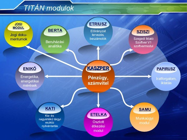 A 2002-re elkészült és folyamatosan fejlesztés alatt álló, a RITEK Zrt. birtokában lévő saját fejlesztésű rendszer a TITÁN nevet viseli. „A nyolc modulból álló rendszerrel pénzügyi-számviteli feladatokat, tárgyi eszköz és élelmezési nyilvántartást, továbbá személyzeti adatnyilvántartás is végezhető. A TITÁN keretrendszer megkapta az IBM tanúsítványát, míg iktatója rendelkezik a CERTOP Kft. által kiadott tanúsítvánnyal” – mondott példákat a vezérigazgató.