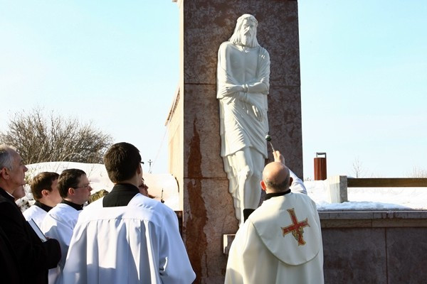 Dr. Márfi Gyula érsek mielőtt megáldotta a szobrot felidézte annak történelmi, bibliai hátterét, azt a pillanatot, amikor Pontius Pilatus bemutatja Jézust a tömegnek.