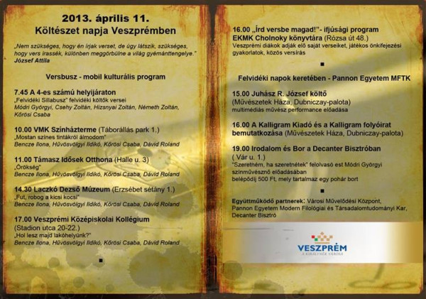 Figyelmébe ajánlom József Attila születésének emléknapján, a költészet napján megrendezésre kerülő városi rendezvényeket.