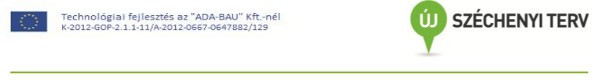 Az Ada-Bau Kft. a K-2012-GOP-2.1.1-11/A-2012-0667- 0647882/129 azonosító számú pályázat által 17 090 480 forint vissza nem térítendő európai uniós támogatást nyert el, melynek keretében technológiai fejlesztéseket hajtott végre. A beruházás összes költsége 42 726 200 forint. A projekt az Európai Unió támogatásával, az Európai Regionális Fejlesztési Alap társfinanszírozásával valósult meg.