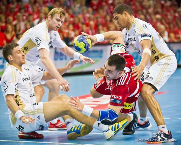 Toft Hansen a 8. minutumban szerezte az első vendég akciógólt, s Omeyer is védeni tudott. Csapatuknak – bizonyítva extraklasszisukat – pedig mindössze négy perc kellett az egyenlítéshez, miután Jicha és Narcisse is hatalmas bombát „ragasztott” a hálóba (11. perc: 5:5). A kisebb hullámvölgy után ismét hullámhegy következett a MKB-nál: Ugalde kétszer is „beköszönt”, majd Sulic alakította 8:5-re az állást.