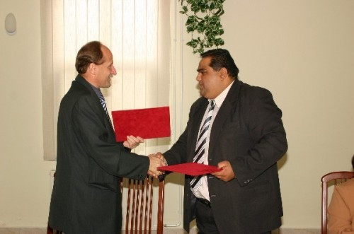 A rövid megbeszélés után Dr. Bolcsik Zoltán dandártábornok, megyei főkapitány és ifj. Kozák János, az Országos Cigány Önkormányzat elnökhelyettese, a Veszprém Megyei Cigány Önkormányzat elnöke aláírták azt az együttműködési megállapodást, amely az elkövetkezendő évekre meghatározza a partnerek feladatait, javíthatja a most is jónak minősített rendőr – roma kapcsolatot.