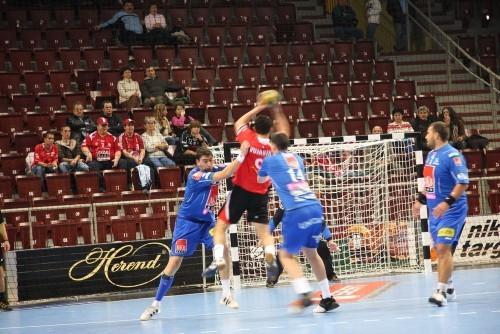 Remekül tartották magukat az alföldiek a találkozó elején, 5:5-ig fej-fej mellett haladtak a mérkőző felek. Az MKB ezt követően magasabb fokozatba kapcsolt, s egymás után szerzett újabb öt találatot, miközben Peric kapuja érintetlen maradt. Ebben természetesen fontos szerepe volt a klasszis hálóőrnek is. Támadásban pedig Ilyés és Gulyás bizonyult vezérnek, mindketten szép találatokat jegyeztek. A folytatásban azonban bosszantó hibák sorozatát produkálták a mieink. Szerencsére a vendégek nem tudták kihasználni a megingást, így hosszú percekig egyik hálót sem érintette a játékszer. A gólcsendet aztán a vendég kecskemétiek törték meg a 19. percben, 10:6-ra alakítva az állást. A magyar bajnok viszont kijött a gödörből, s egy újabb 5:0-s szériát produkált, így a hajrában bekapott gólok ellenére megnyugtató előnnyel mehetett a félidőre a csapat (16:9).