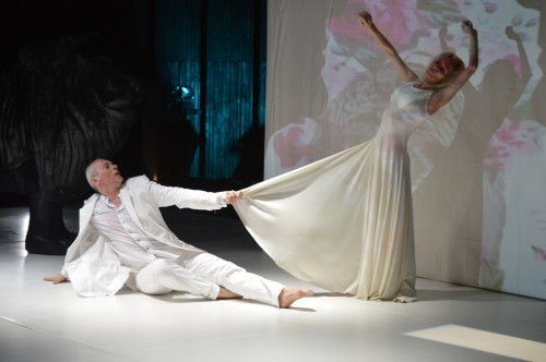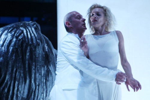 Ladányi Andrea méltóságteljes tartással mozog, bár megkínzottságát, kiégettségét még a csábítás pillanataiban sem rejtegeti. Ő a racionálisabb elem, aki sokkalta inkább tisztában van ennek a kapcsolatnak a kudarcával, Krámer György figurája többször kezdeményez, morfondíroz, olykor épp emiatt fullad csődbe az egymásra találási kísérlet. Nem értik egymást, nincs mi összetartsa őket, belefáradtak a csatározásba is. Meglehetősen pesszimista kép a házasságról, de azt pontosan viszi színre, s emiatt jó előadás a Porcelán, noha a vetítést kissé feleslegesnek tartom, a nélkül is elvinné a hátán a két táncos a produkciót.